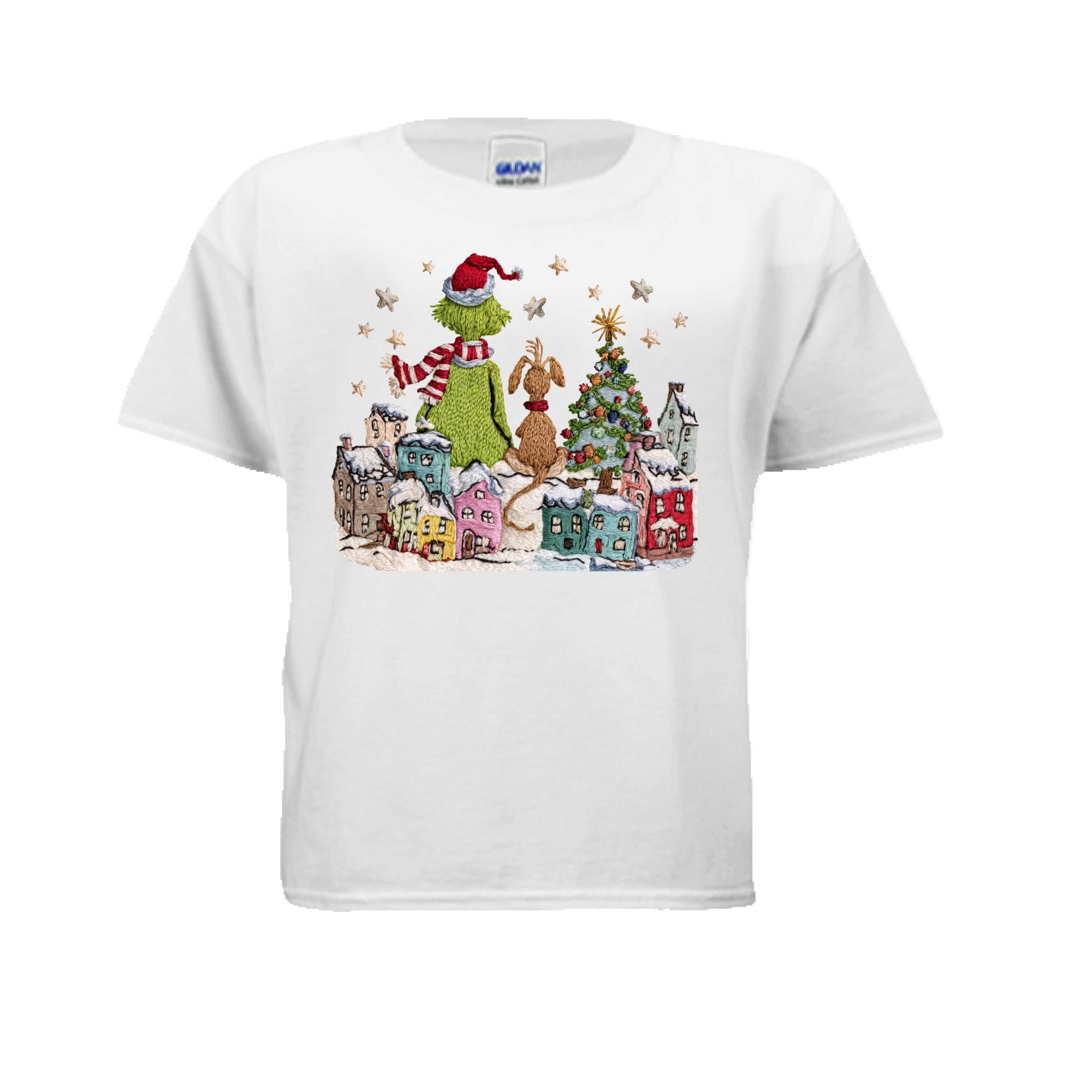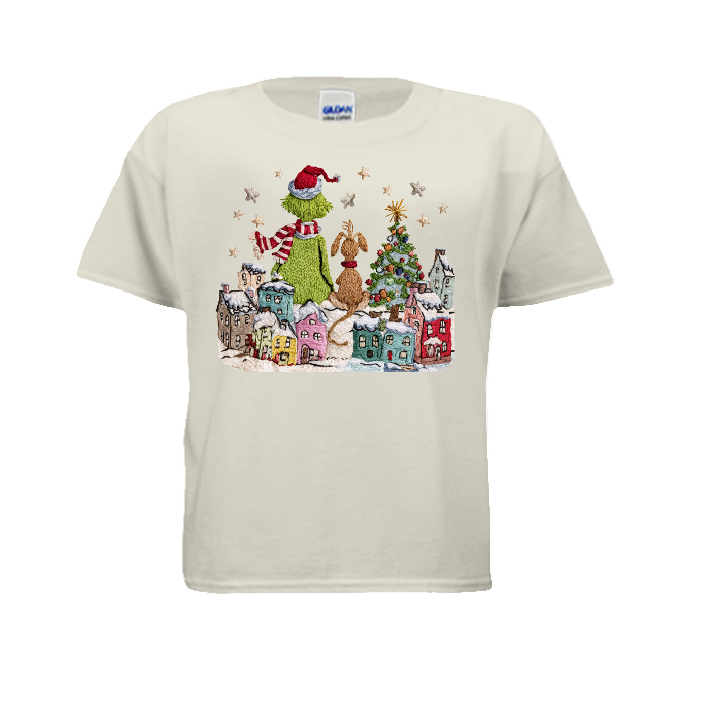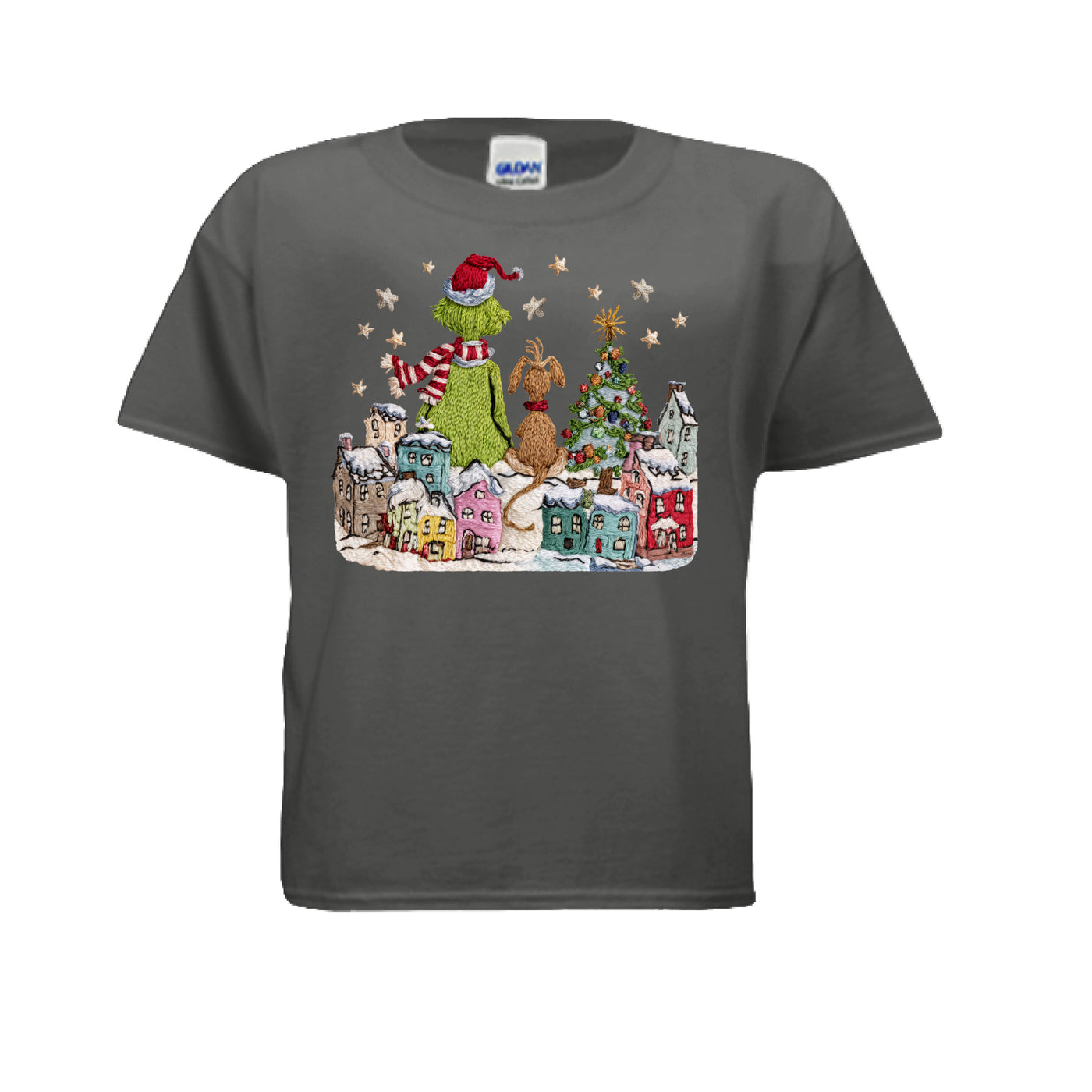 Grinch and Max- Small Town Faux Yarn Christmas Youth Tshirt